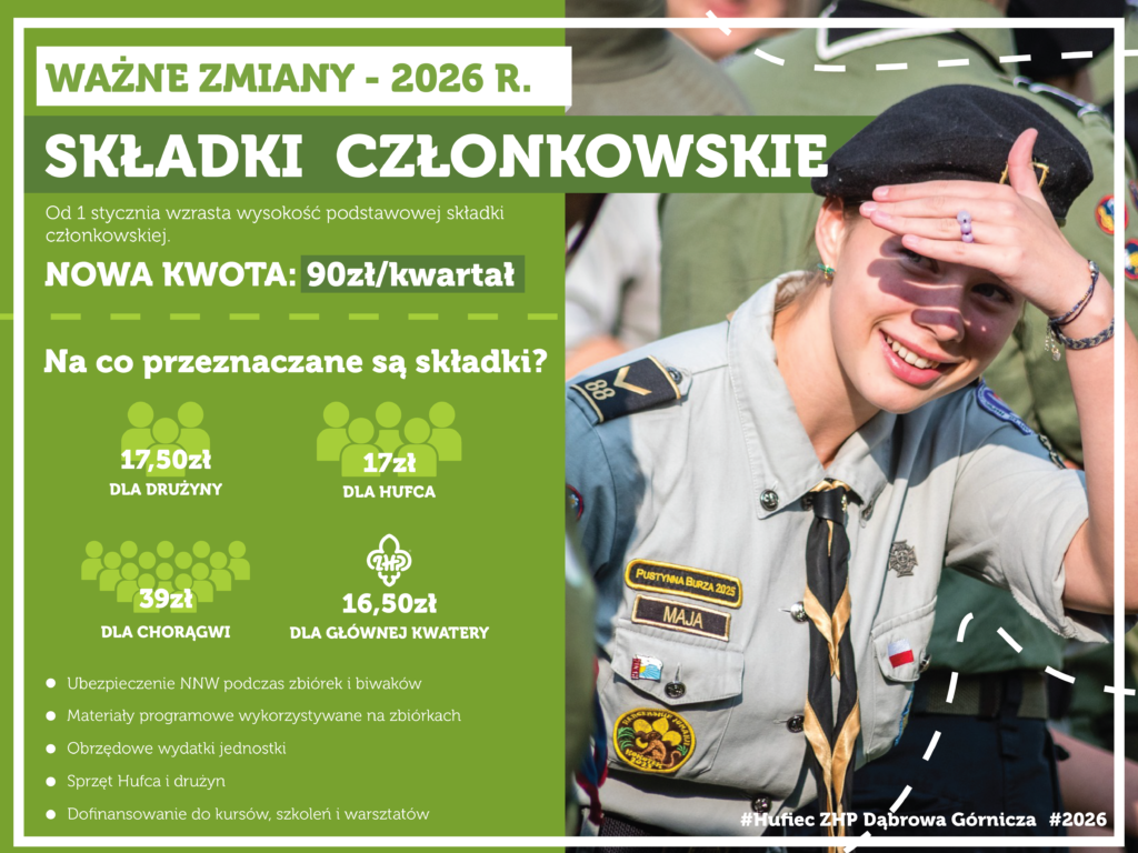 TYTUŁ PRZELEWU: 100 scz, I kwartał, imię i nazwisko harcerza/zucha, nazwa drużyny/gromady,